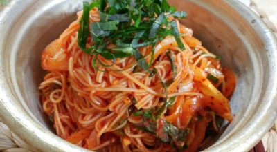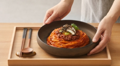 모든 재료를 양념과 함께 잘 섞어 조물조물 버무려주면, 손끝에서 쫄깃쫄깃한 국수 면발의 식감이 그대로 느껴질 거예요.