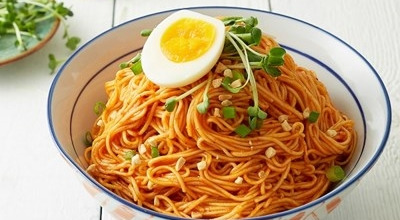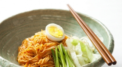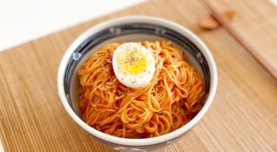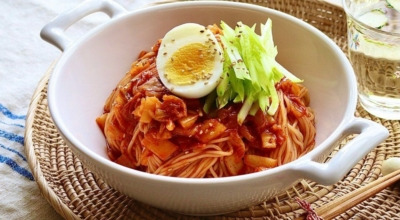 고운 고춧가루 4큰술, 매실액 5큰술, 다진 마늘 1큰술, 참기름 2큰술, 통깨 1큰술, 삶은 소면 200g, 열무물김치 건더기 150g, 채 썬 오이 약간, 삶은 달걀