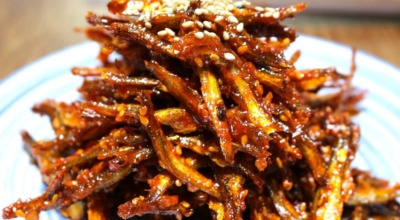 멸치: 200g, 식용유: 2큰술, 다진 마늘: 1큰술, 고추장: 1큰술, 설탕: 1큰술, 간장: 한 큰술, 참기름: 1작은술, 깨: 적당량 (선호에 따라 추가)