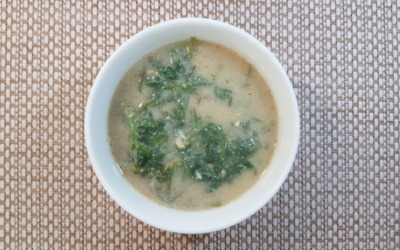 8. 들깻가루 3큰술과 채 썬 대파 1대를 넣으면, 쑥국 맛있게 끓이는 알토란 레시피 완성입니다.