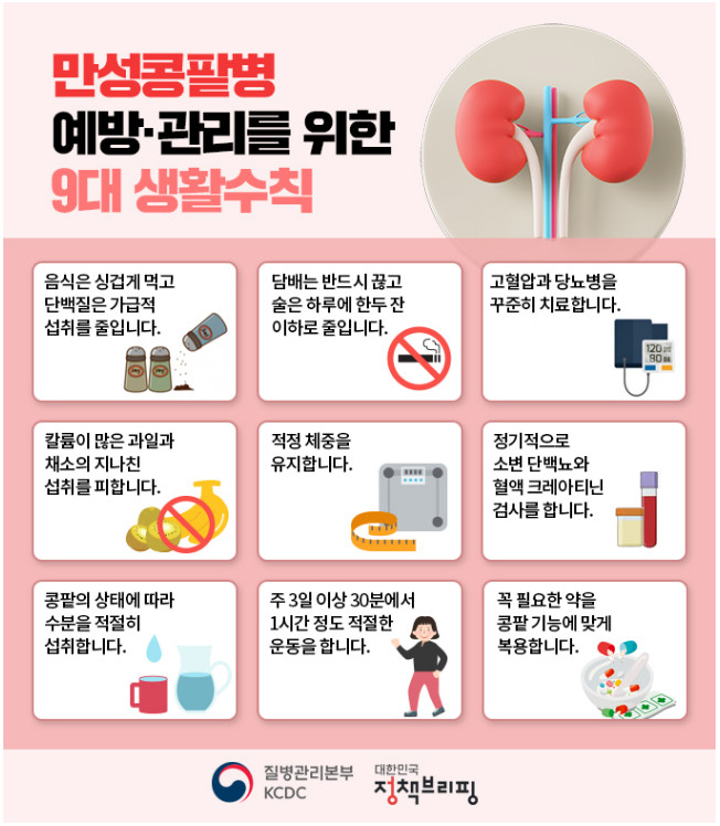 만성 콩팥병은 조기에 발견하면 진행을 늦출 수 있으므로, 고위험군은 정기적인 검진과 관리를 필수적으로 해야 합니다.