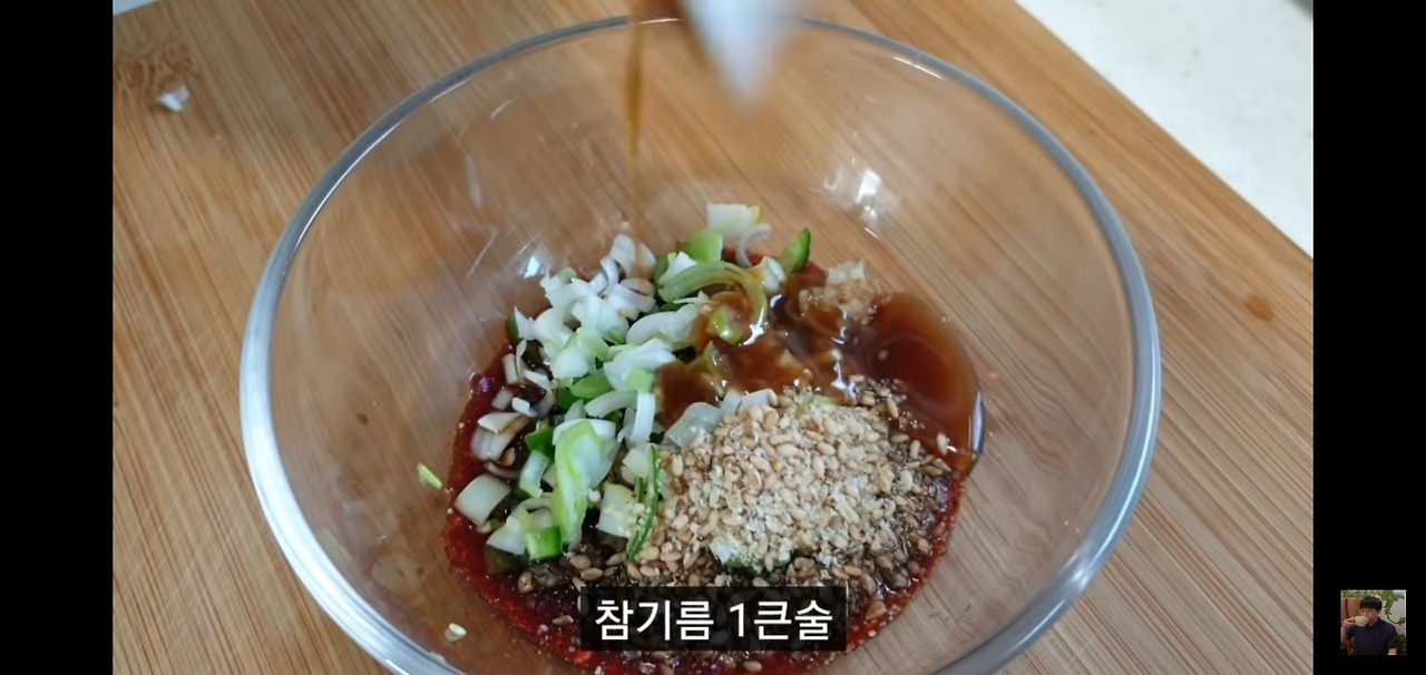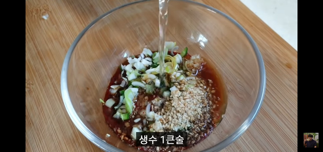 잔치국수 양념장이 너무 진할 수 있으니, 생수 1스푼을 넣어 농도를 조절해 주세요.