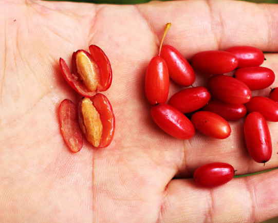 산수유는 식이섬유 함량이 높은 편이에요. 식이섬유는 소화가 천천히 진행돼 포만감을 오래 유지해 체중 조절에 도움이 돼요. 또 장운동을 활발하게 해 노폐물 배출을 돕고 변비 예방과 장 건강에도 도움을 줘요.