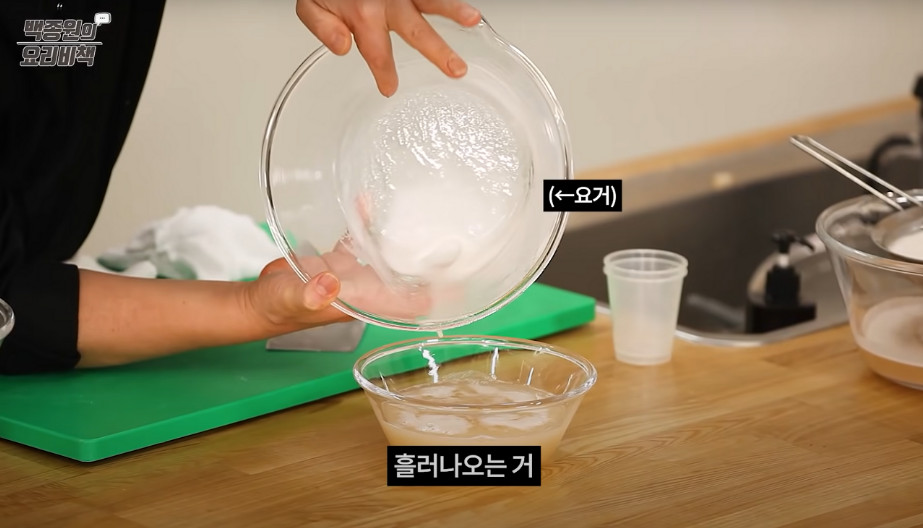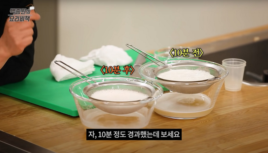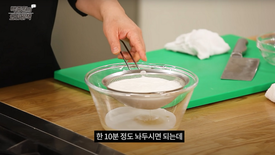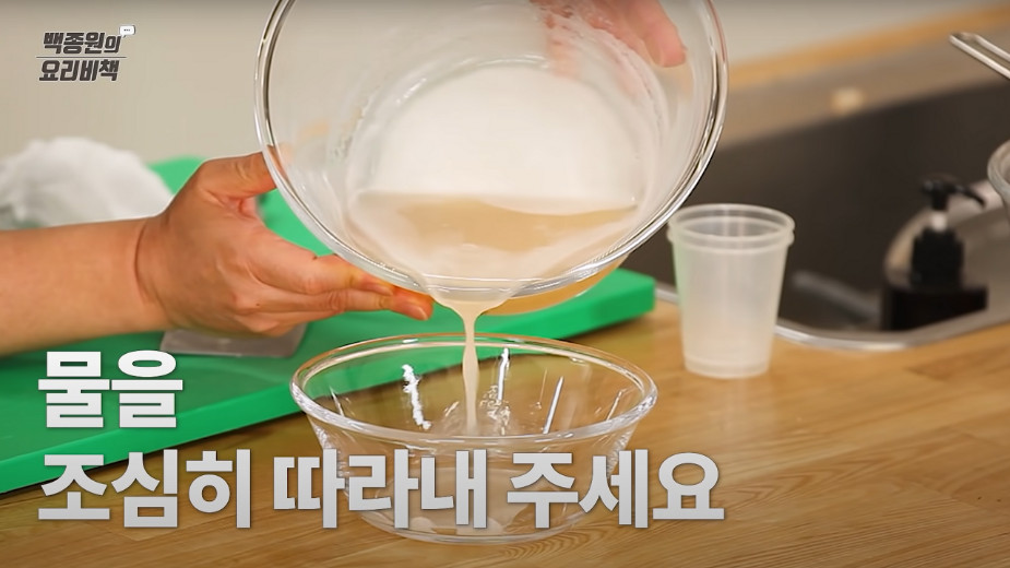 물을 버릴 때는 바닥에 가라앉은 전분까지 함께 버리지 않도록 천천히 따라내시면 됩니다.