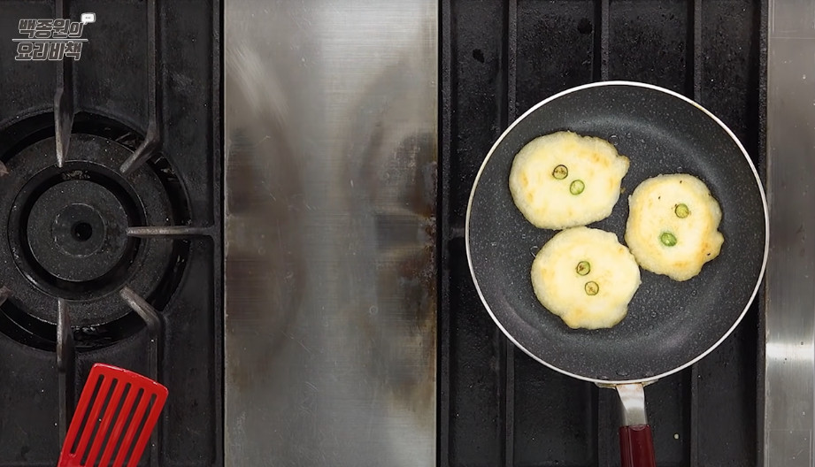 10. 감자전을 뒤집어 가며 노릇노릇하게 구워 주세요.