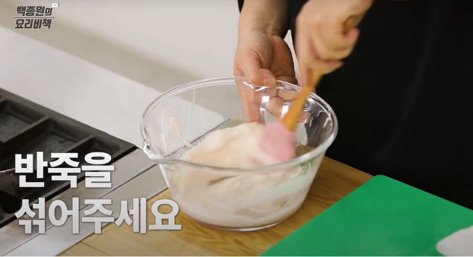 6. 반죽을 충분히 섞은 뒤 꽃소금을 넣어 주세요. 꽃소금이 없다면 맛소금을 사용해도 괜찮아요.