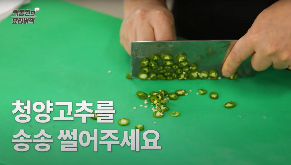 7. 이제 청양고추를 가늘게 송송 썰어 주세요.