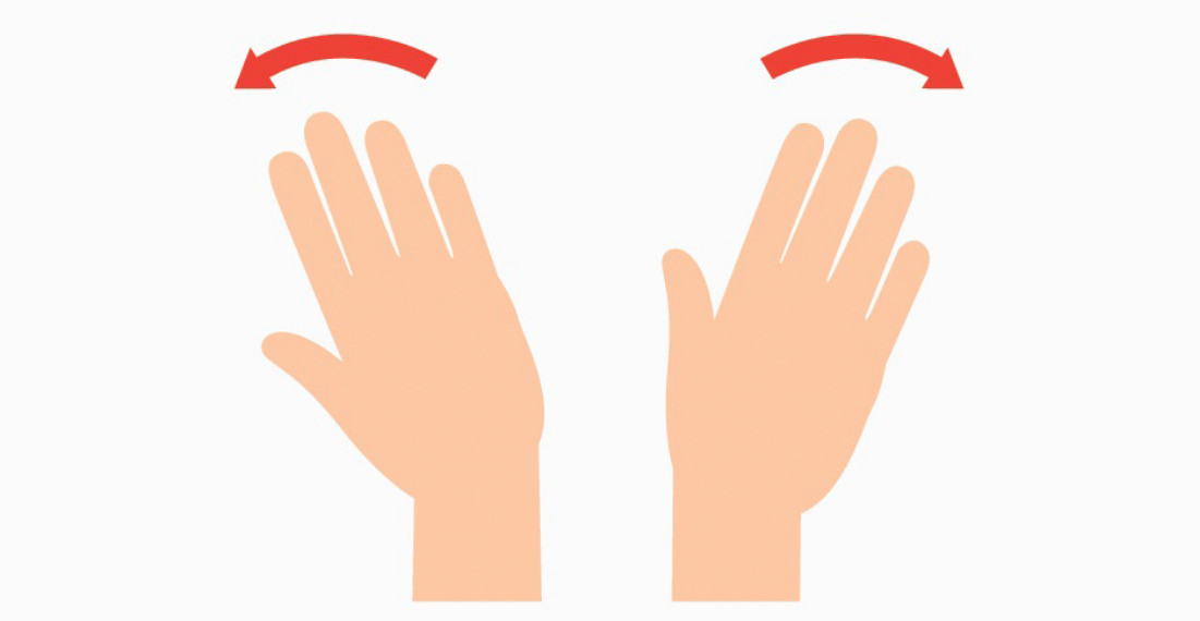 손바닥을 펴고 왼쪽으로 구부린 상태를 약 4초간 유지한 뒤, 반대편인 오른쪽으로 구부린 상태를 4초 정도 유지합니다.