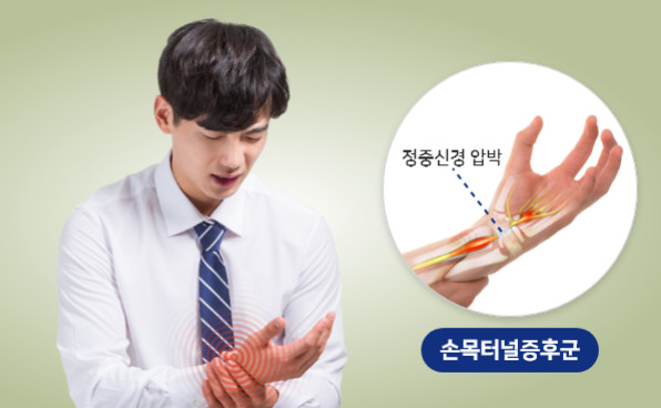 수근관 증후군이라고도 불리는 손목 터널 증후군은 손목의 정중신경 압박으로 인해 저림과 통증이 나타나는 질환입니다. 정중신경은 손목 안쪽의 수근관이라 불리는 터널 내부에서 압박을 받으며 발생하는데, 손을 과도하게 사용하면 인대가 두꺼워지고 이로 인해 정중신경이 눌려 통증과 저림이 생길 수 있습니다.