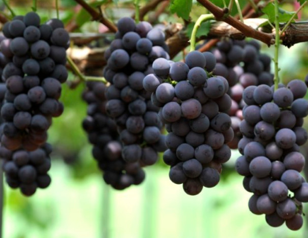 포도가 한국에 들어온 것은 고려 시대 중국에서 수입된 것으로 추정됩니다. 조선왕조실록에도 포도에 관한 기록이 실려있습니다. 1910년에는 수원과 뚝섬에 유럽과 미국의 포도 품종을 심으면서 국내에서 포도의 현대적인 재배가 시작되었고 이후로 경상북도, 경기도, 충청남도, 충청북도에서 널리 재배되고 있습니다. 포도는 과일의 여왕이라고 불릴 정도로 영양가가 높습니다. 포도의 주성분은 수분 84g, 탄수화물 15.1g, 지질 0.1g, 단백질 0.5g, 섬유질 0.2g, 회분 0.3g 등입니다. 그리고 포도 껍질의 보라색은 적포도주의 색깔을 나타내는 안토시안계 색소입니다.