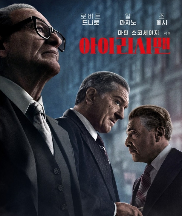 영화 아이리시맨은 장기 미제로 남아있는 ‘지미 호파 실종 사건’을 20세기 미국 정치 이면에 존재했던 악명높은 인물들과 연루된 한 남자의 관점으로 풀어낸 범죄 블랙코미디 영화입니다. 3시간 30분이라는 긴 러닝타임 내내 뛰어난 연출력으로 몰입감을 끌어내고 있으며, 이 영화에 출연한 유명한 배우들의 연기력을 보는 것만으로도 볼만한 가치가 충분할 정도로 인상적인 영화입니다.