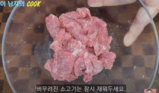 버무린 고기는 잠시 그대로 두고 재워주세요.