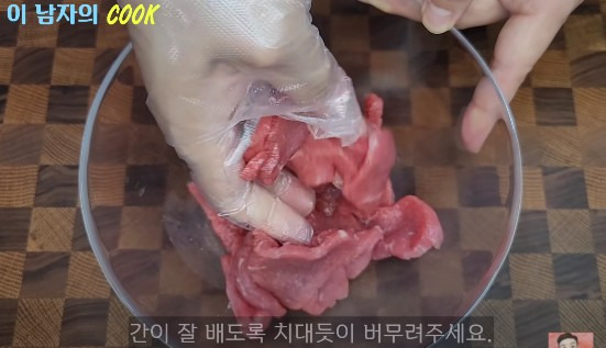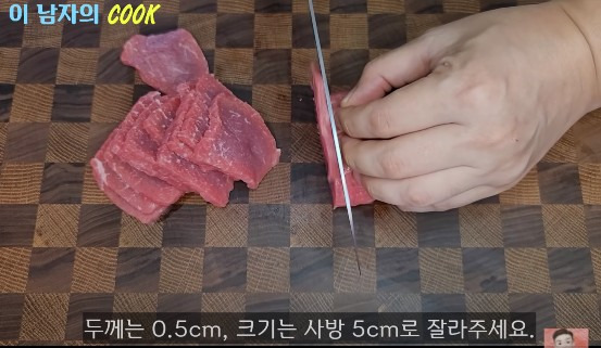 고기는 결을 반대로 하여 얇게 잘라야 해요.