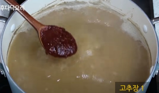 고추장 1숟갈을 넣고 잘 풀어주세요.