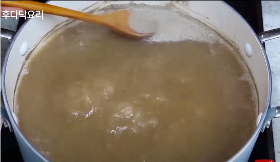 냄비에 쌀뜨물 2.5리터를 붓습니다.