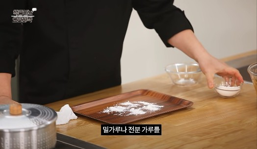 만두를 빚을 쟁반에 밀가루나 전분가루를 약간 뿌려 주고, 만두를 쌀 때 사용할 물도 옆에 준비해 주세요.