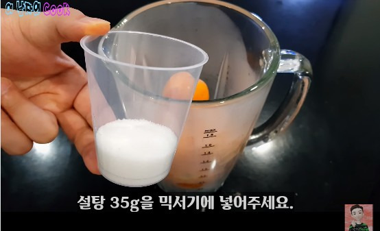 전자레인지에 가열한 귤을 믹서기에 넣고, 설탕 35g도 함께 넣어주세요. 설탕은 귤 1개당 약 5g 비율로 맞추면 된답니다.
