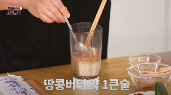 그리고 땅콩버터 한 큰술 정도를 넣어주세요.
