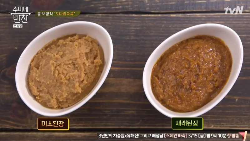 7. 미소된장 2큰술과 재래된장 2큰술을 함께 넣어주세요.