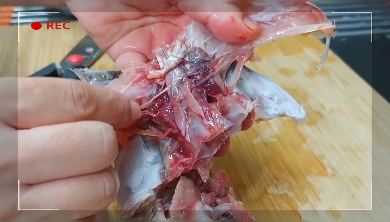 동태의 아가미를 깔끔하게 제거하는 과정이에요.