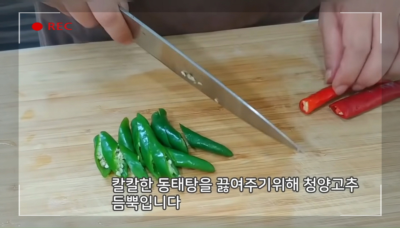 동태찌개의 매운맛을 더하려면 고추는 꼭 넣어야 해요.