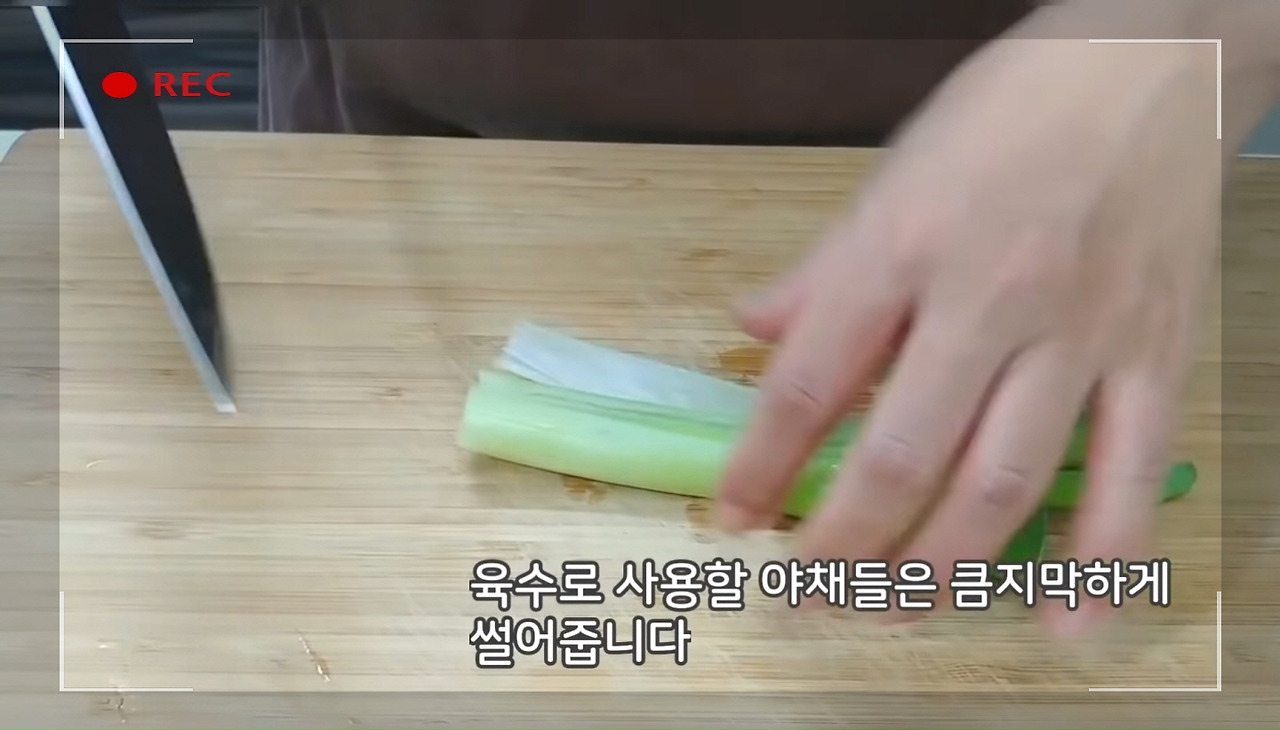 육수에 사용할 채소들은 큼직하게 대강 썰어주면 돼요.