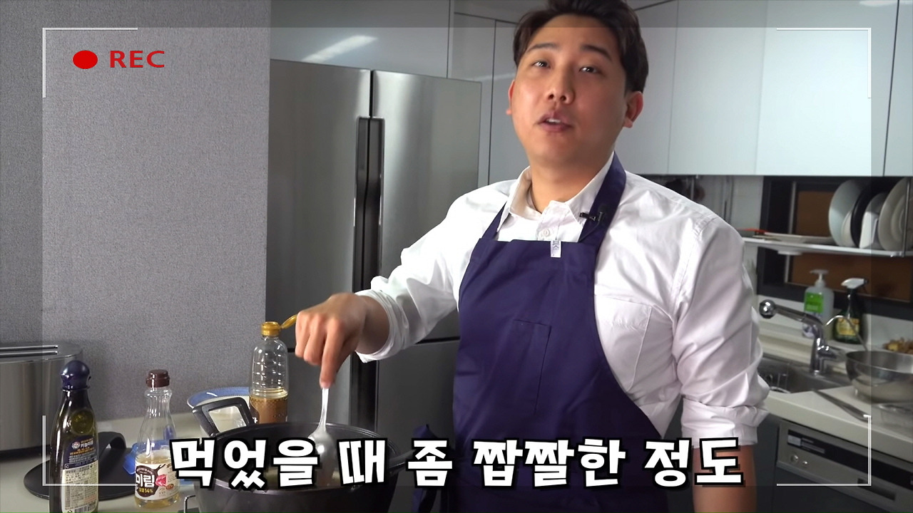 소금을 총 3큰술 반 넣었어요. 지금까지 만든 육수의 맛을 보면, 우동 국물처럼 맛이 날 거예요.