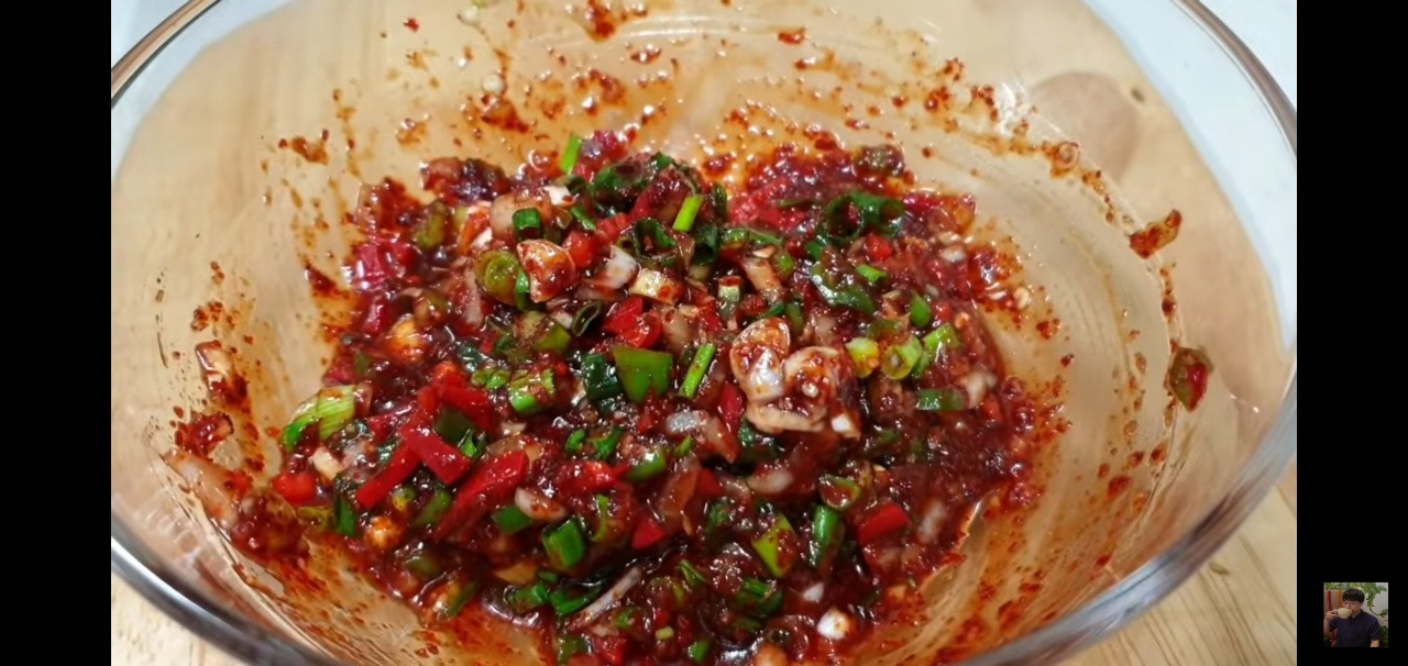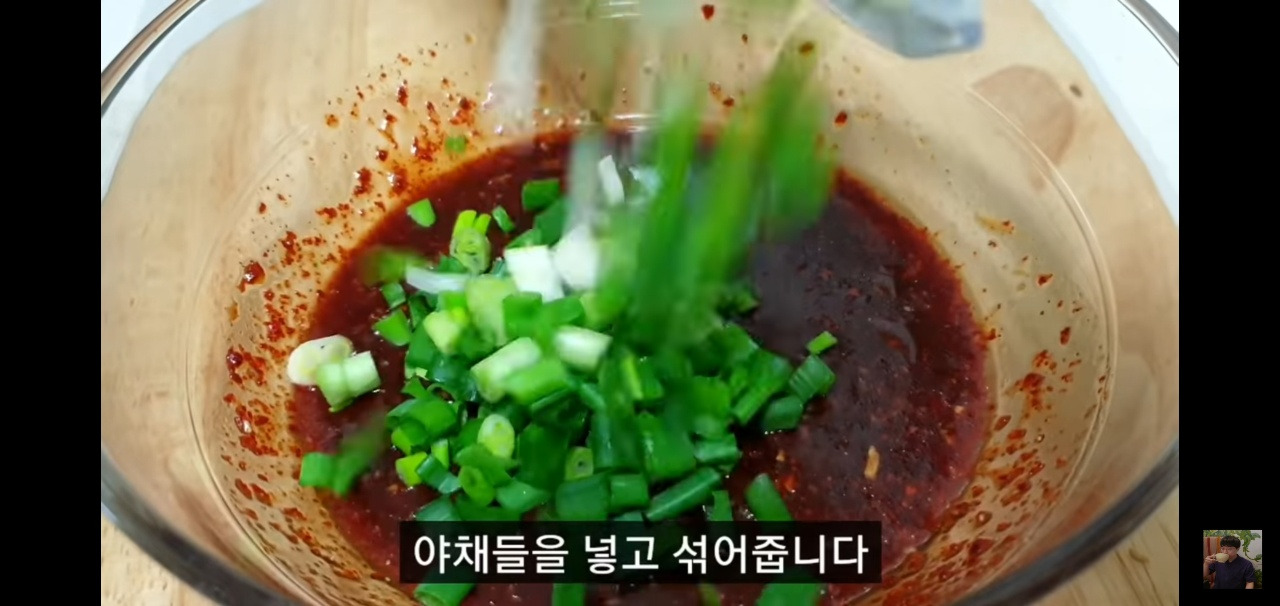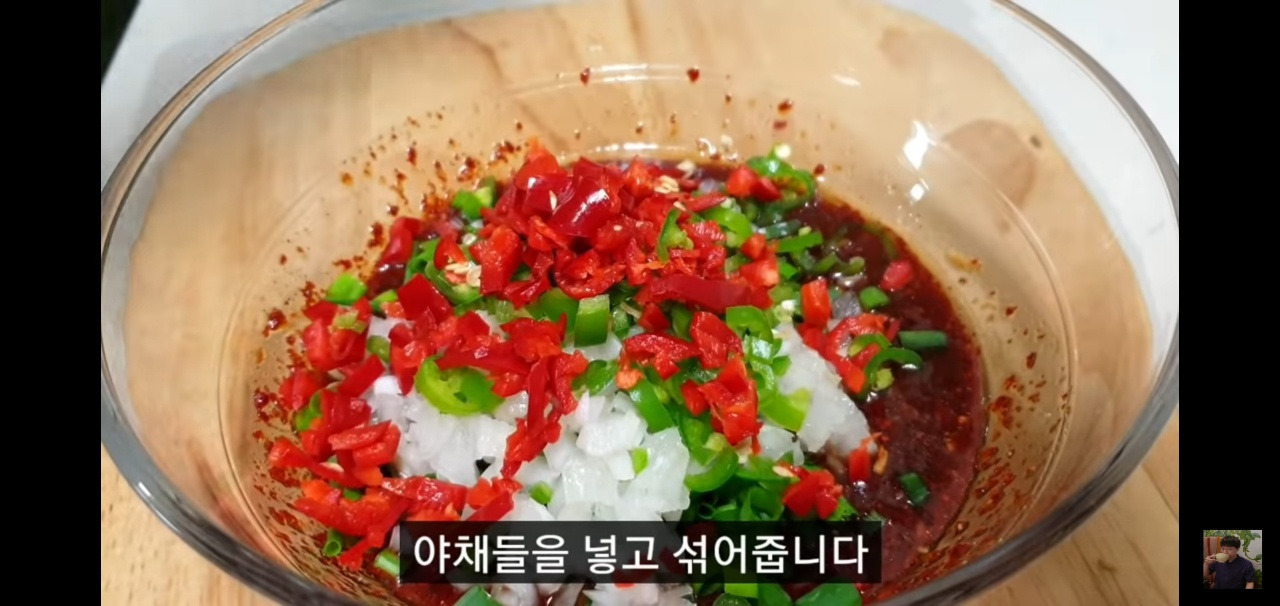 그리고 전에 손질해둔 재료들도 함께 넣고, 양념과 잘 섞어 맛이 잘 배도록 해주세요.