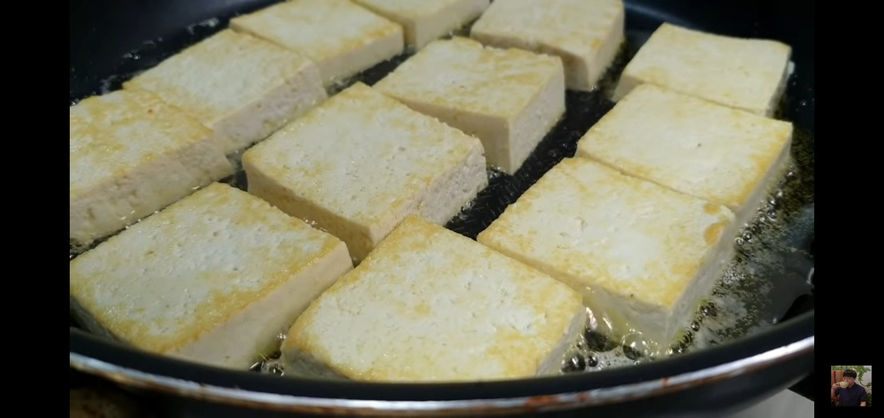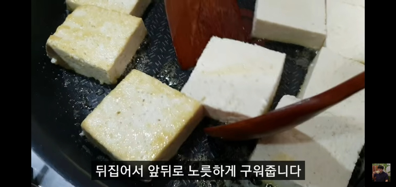 두부를 뒤집어가며 앞뒤가 고르게 노릇노릇하게 구워주세요.