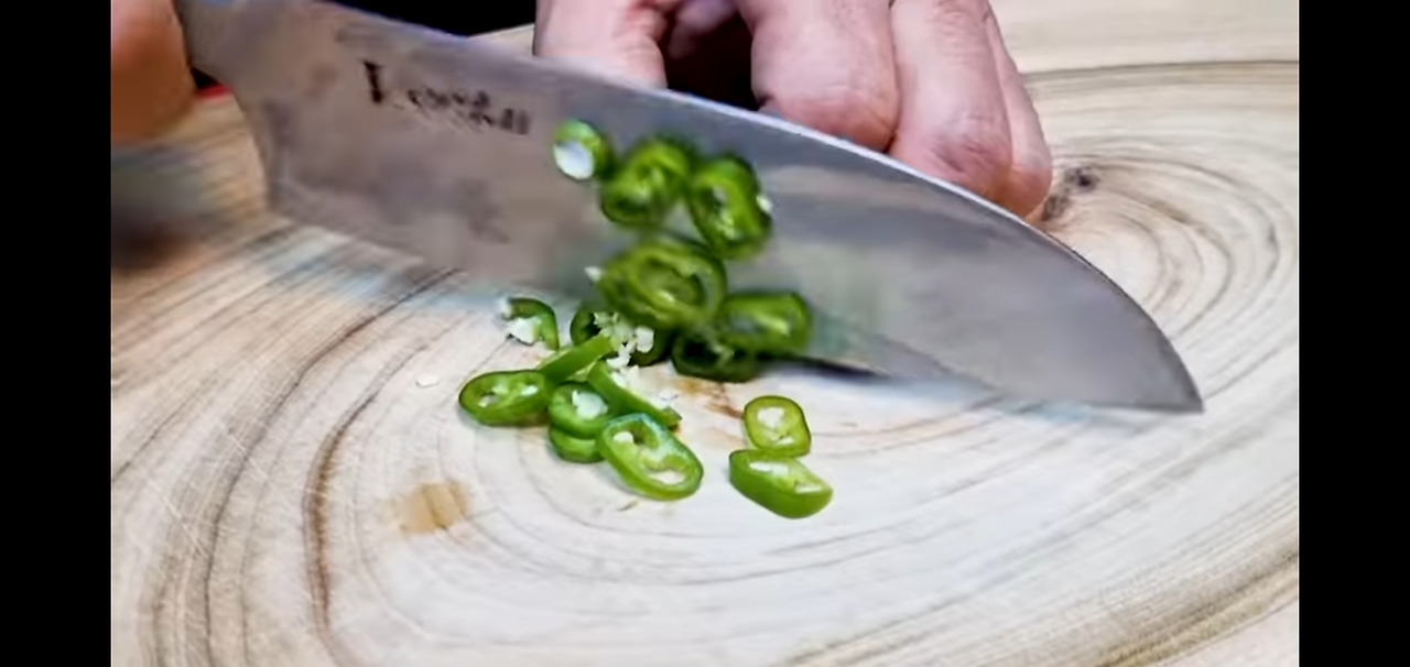 청양고추 한 개와 홍고추 한 개를 작게 잘라주세요.