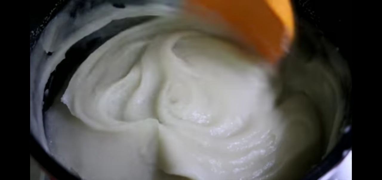 냄비에 찹쌀풀을 넣고 천천히 끓이며 잘 저어주세요.