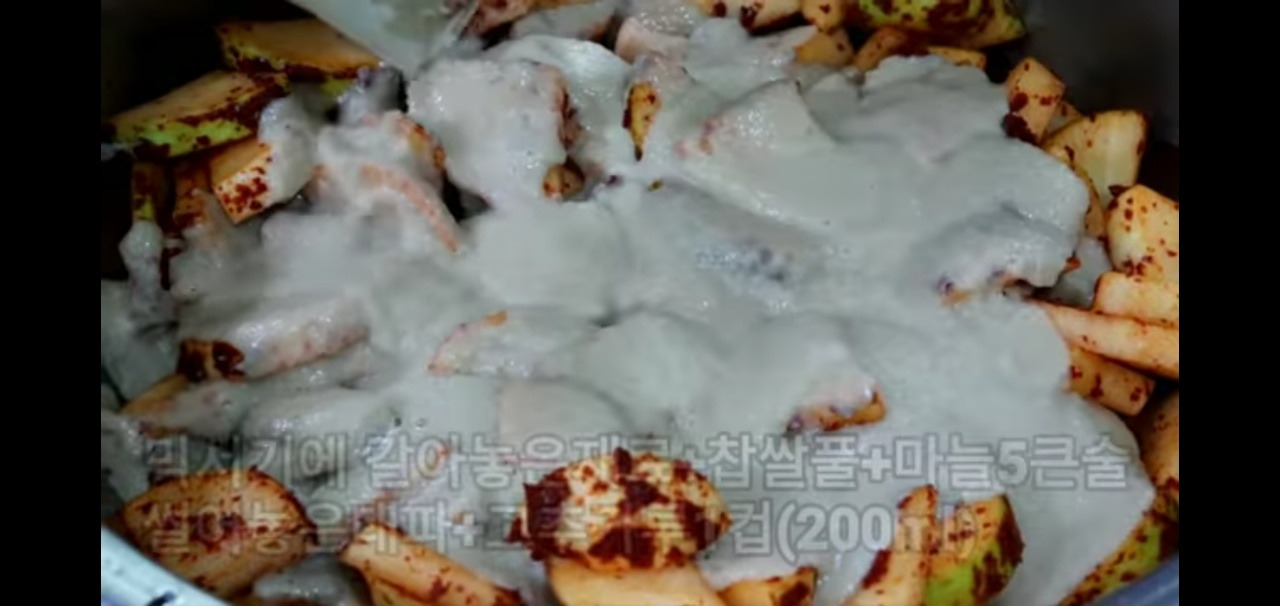 석박지 깍두기 담그는법 ③ 찹쌀풀 만들어주기