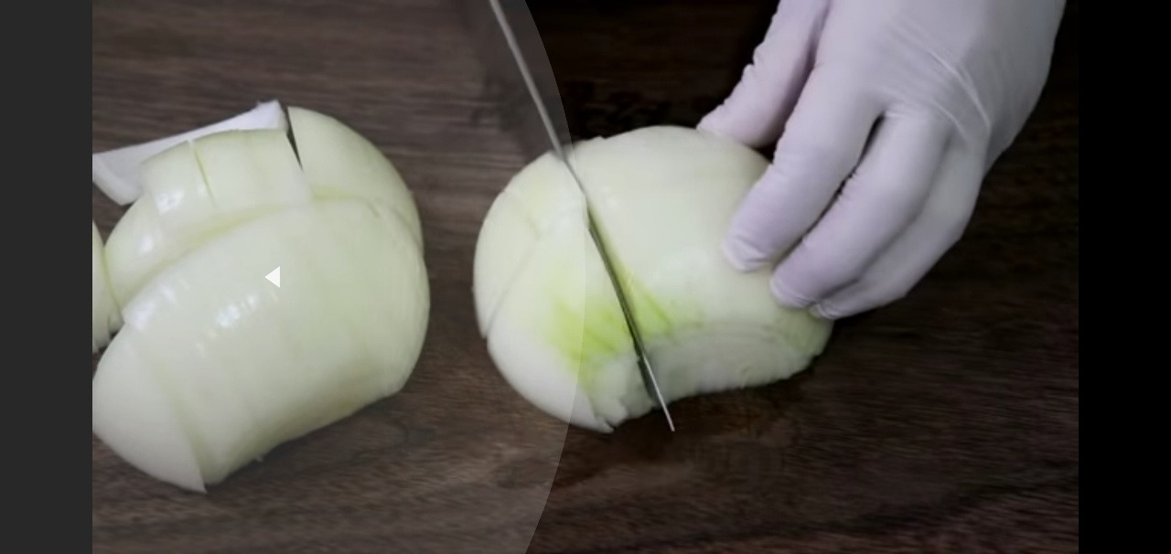이제 석박이 김치에 사용할 재료들을 손질해볼게요. 양파는 갈기 좋게 적당한 크기로 썰어서 준비해주세요.