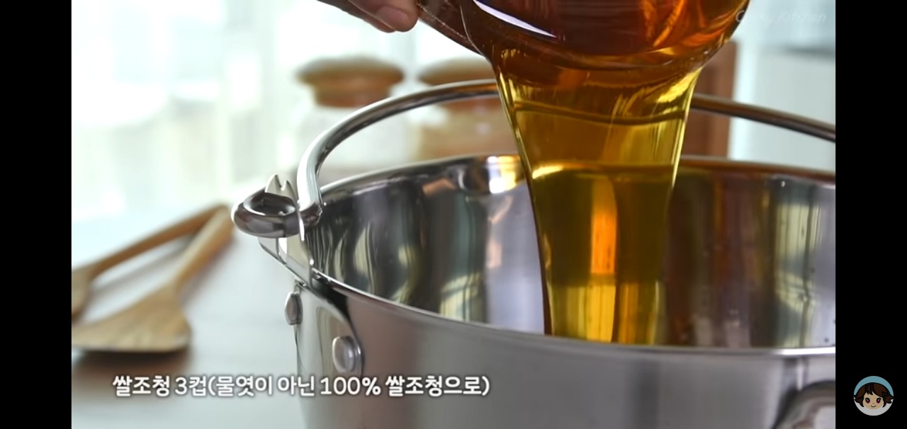 쌀조청 3컵을 넣고 잘 섞어주세요.