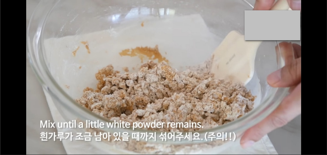 중력분을 넣고 잘 섞어주되, 너무 고루 섞이지 않게 흰 가루가 보일 정도로만 섞어주세요!
