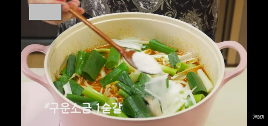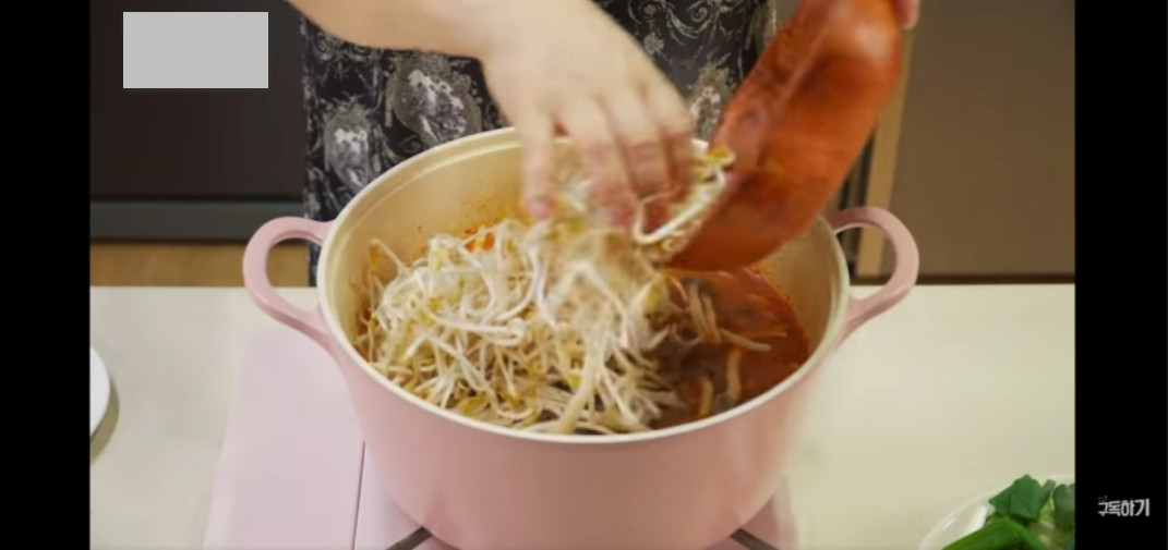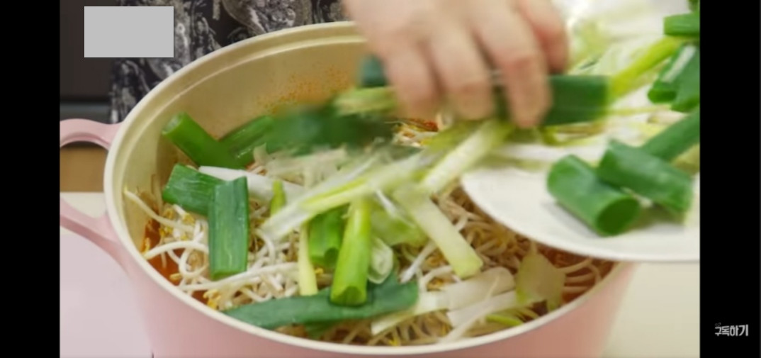 그 다음에 콩나물과 대파도 함께 넣고 끓여주세요.