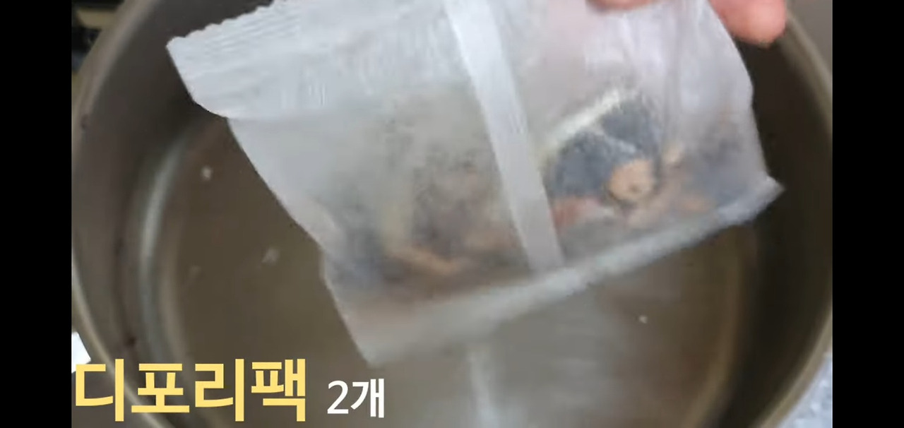 그리고 디포리팩(육수팩) 2개를 넣어주세요.
