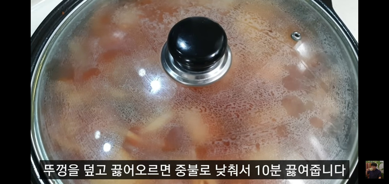 뚜껑을 덮고 끓기 시작하면, 중불로 줄여 10분간 끓여주세요.