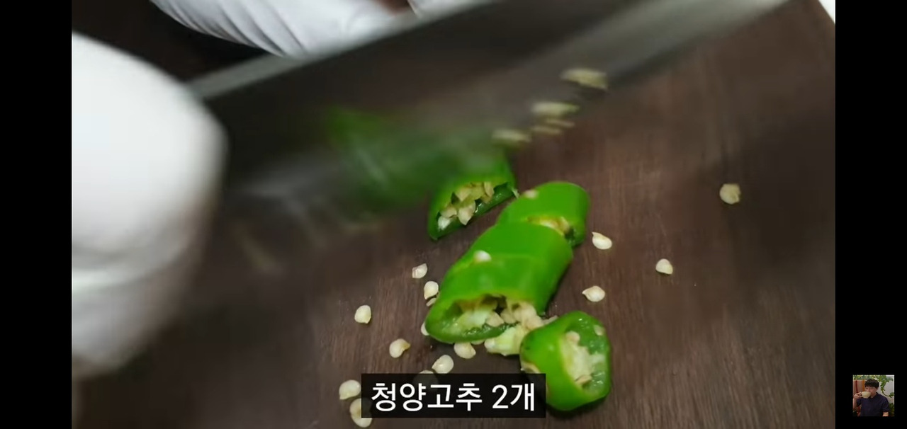 마지막으로 두부와 고추를 넣고 한소끔 더 끓여주시면 됩니다.