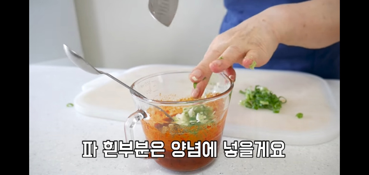 대파의 흰 부분은 양념에 넣고, 초록 부분은 나중에 완성된 황태구이 위에 고명으로 얹어 주시면 좋습니다.