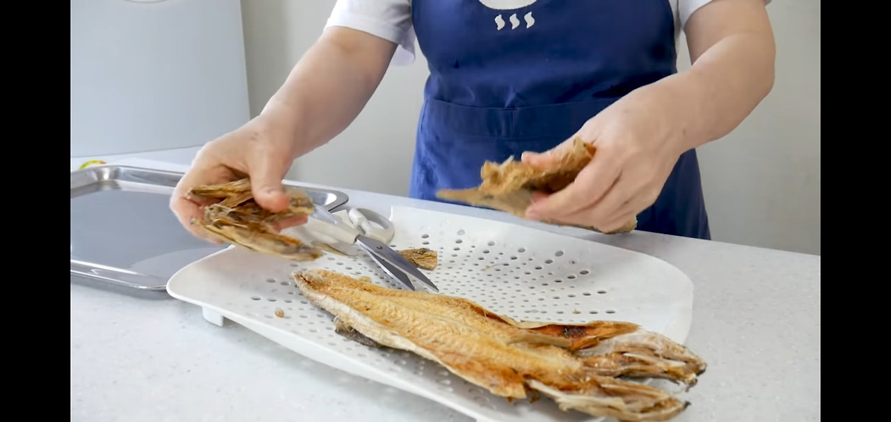 그다음, 여기저기 숨겨진 잔가시를 꼼꼼히 제거해 주시면 더욱 깔끔하고 맛있는 황태 양념구이를 즐기실 수 있습니다!
