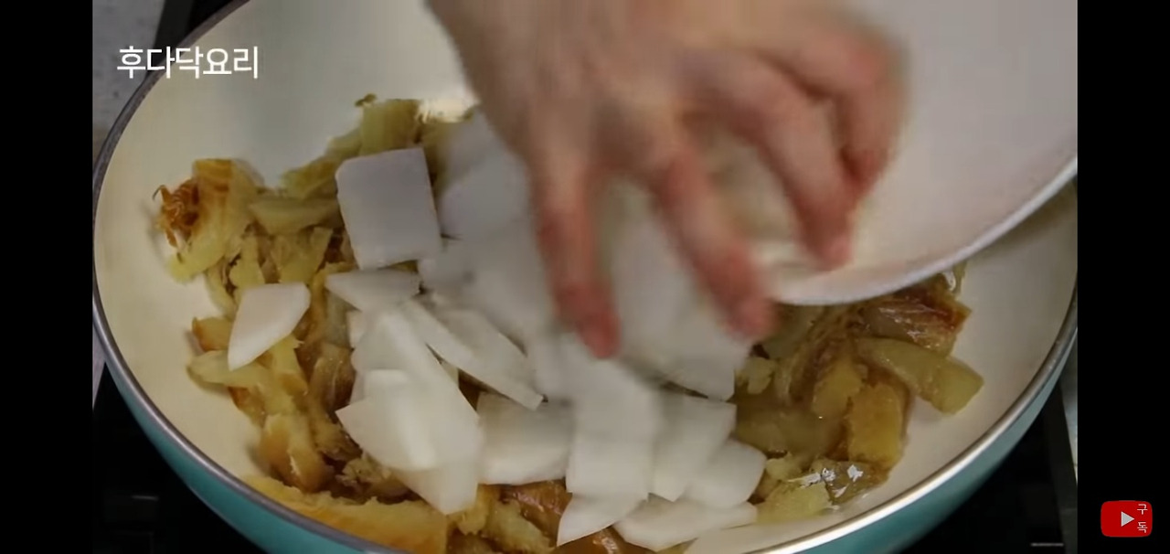 중불로 올린 후, 차근차근 잘 볶아주세요.