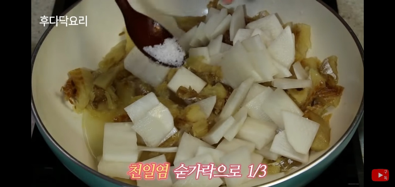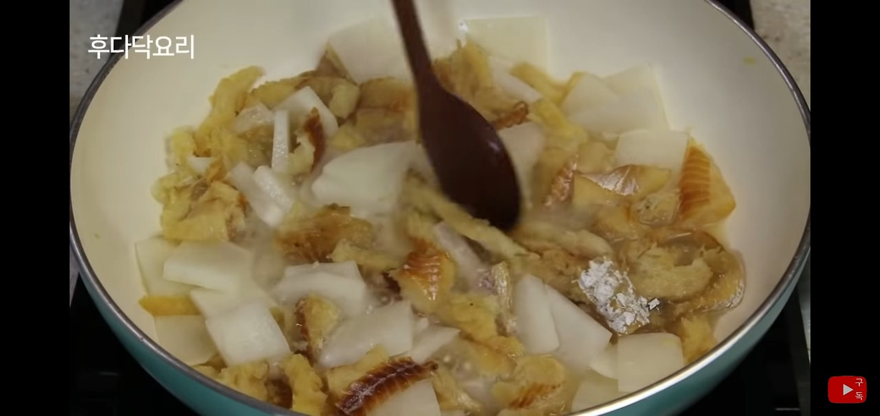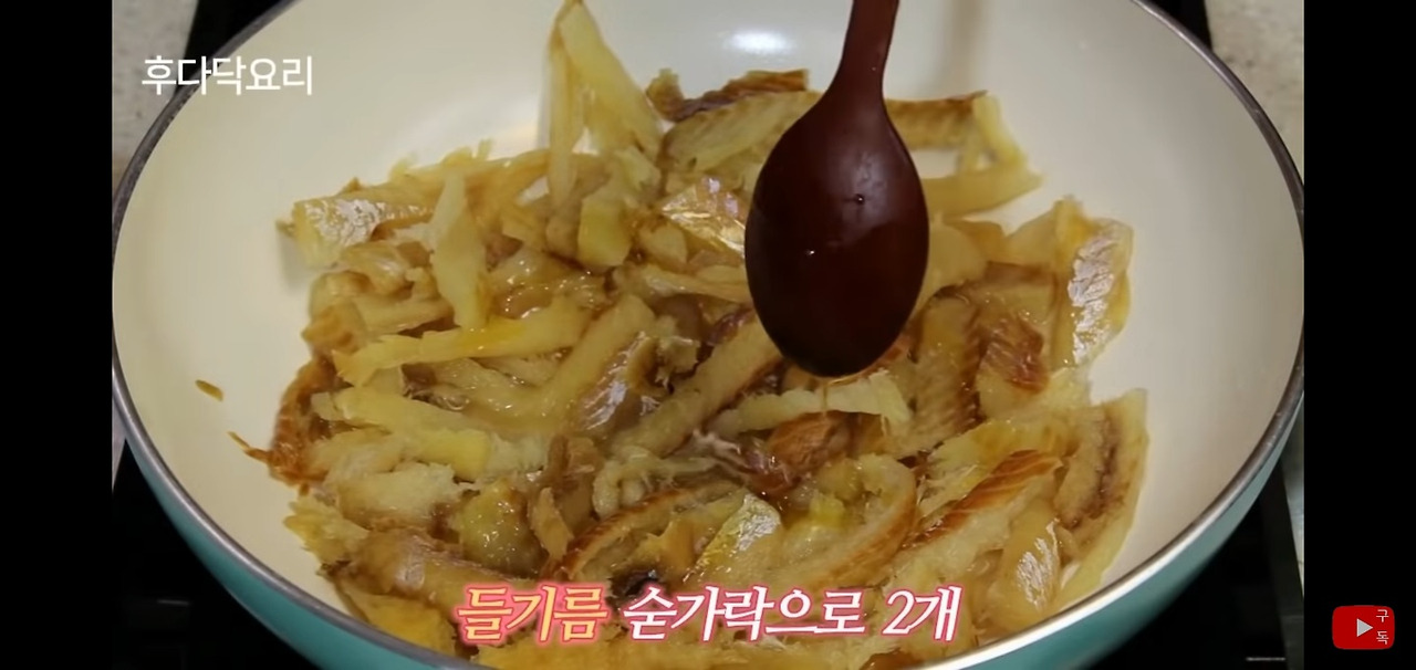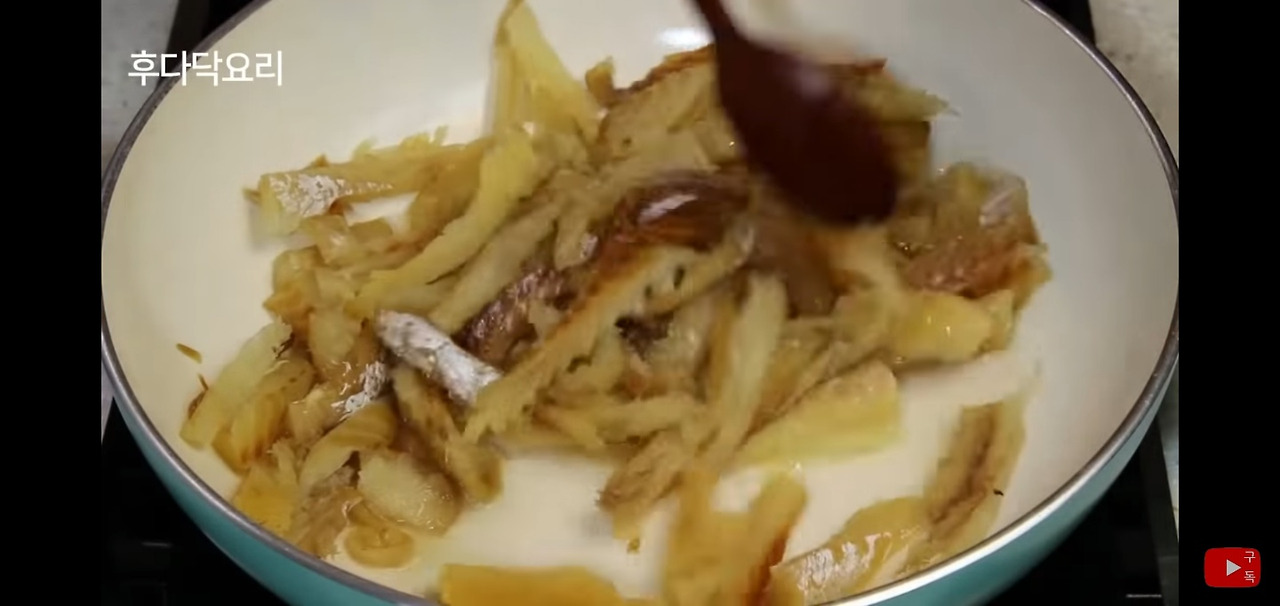 이제 북어국을 맛있게 끓이기 위해 황태포를 익혀보겠습니다.