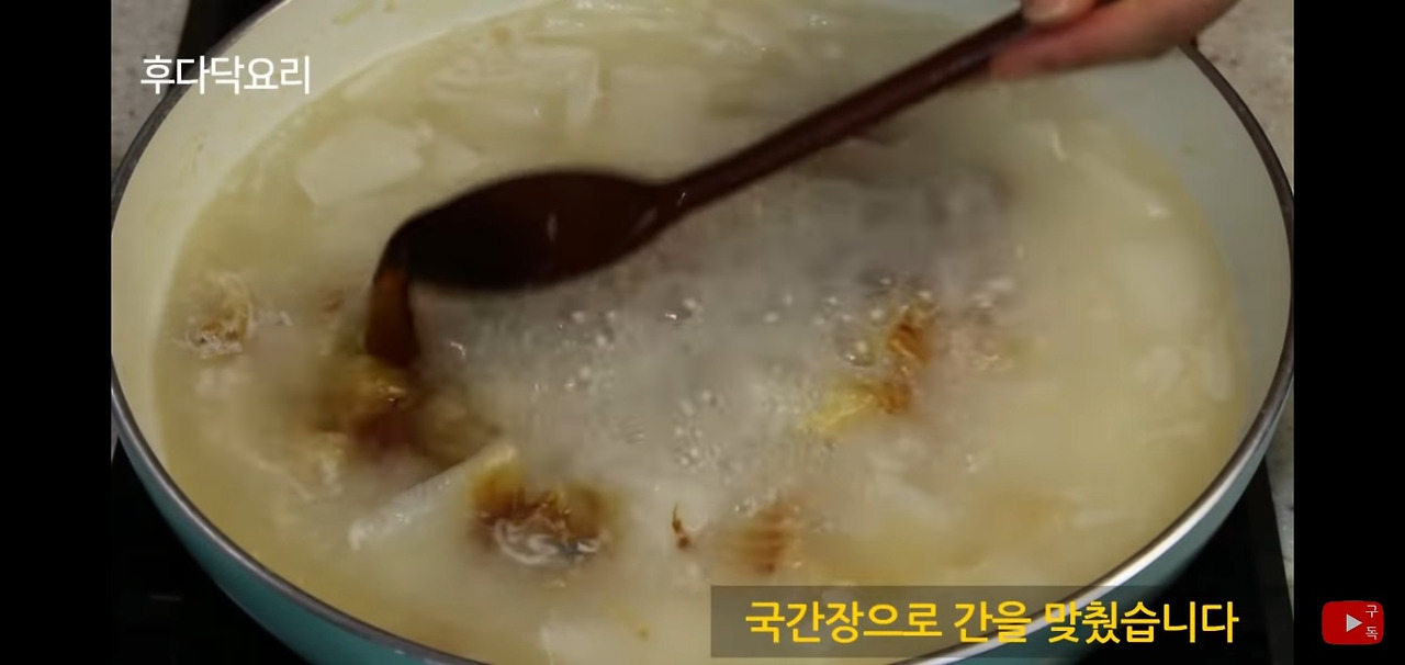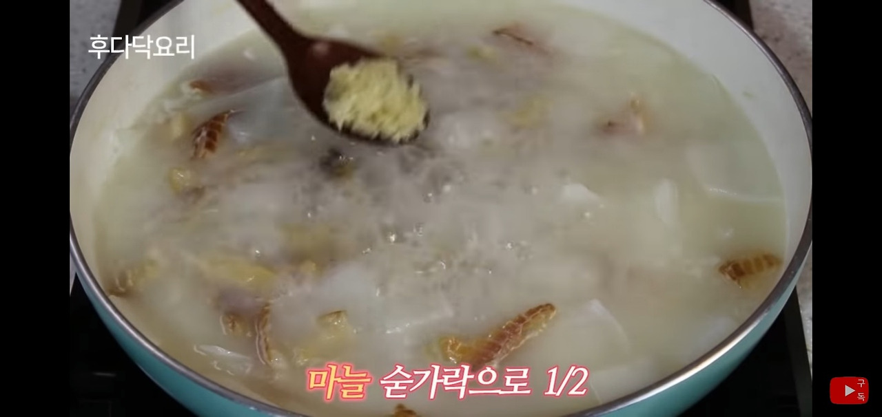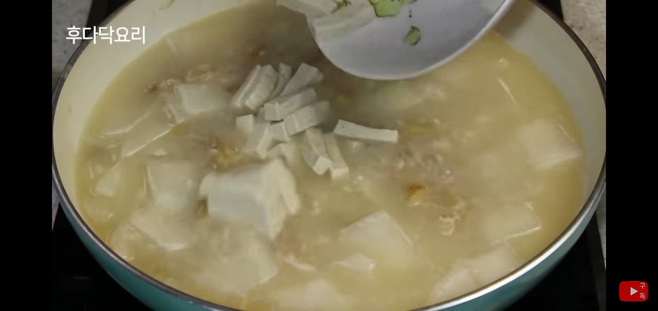 그 다음 잘 섞어가며 뽀얀 육수가 우러나도록 해주세요.