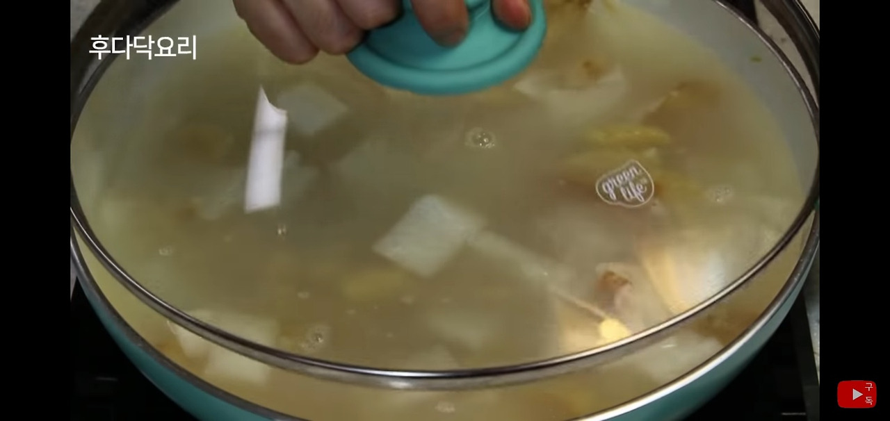 국물이 진하게 우러났다면, 물 1.3L를 그대로 추가한 후 뚜껑을 덮어주세요.