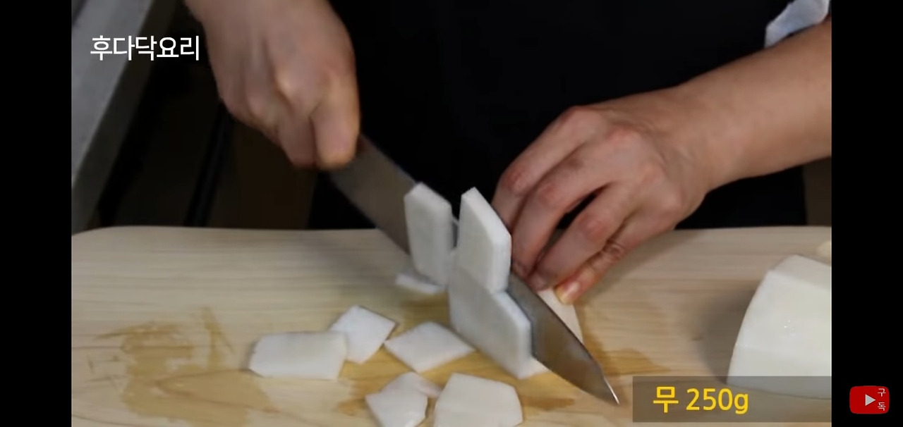 무는 숟가락으로 떠먹기 좋은 크기로 잘라주세요.