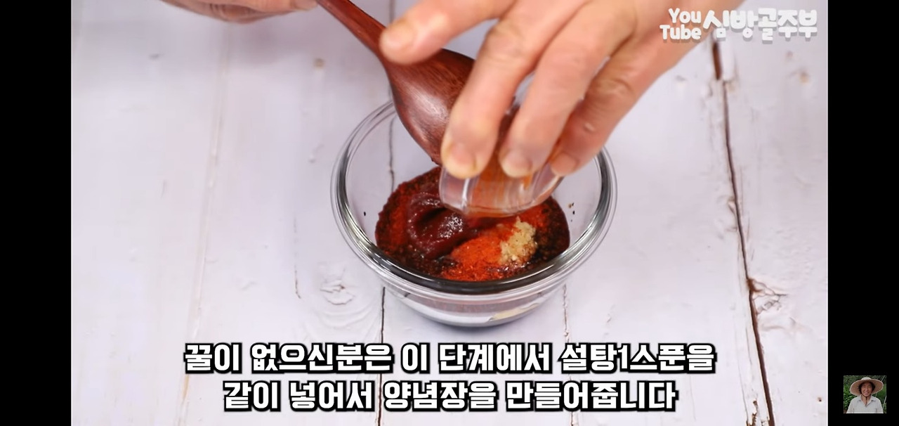 만약 꿀이 없다면, 양념장을 만들 때 설탕을 한 스푼 추가하시면 됩니다.