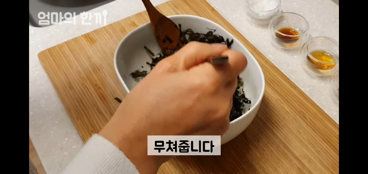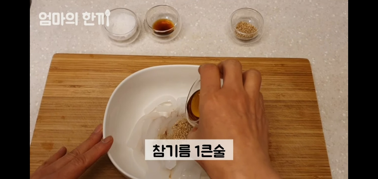 깨소금 1스푼과 참기름 1스푼도 함께 넣어주세요.