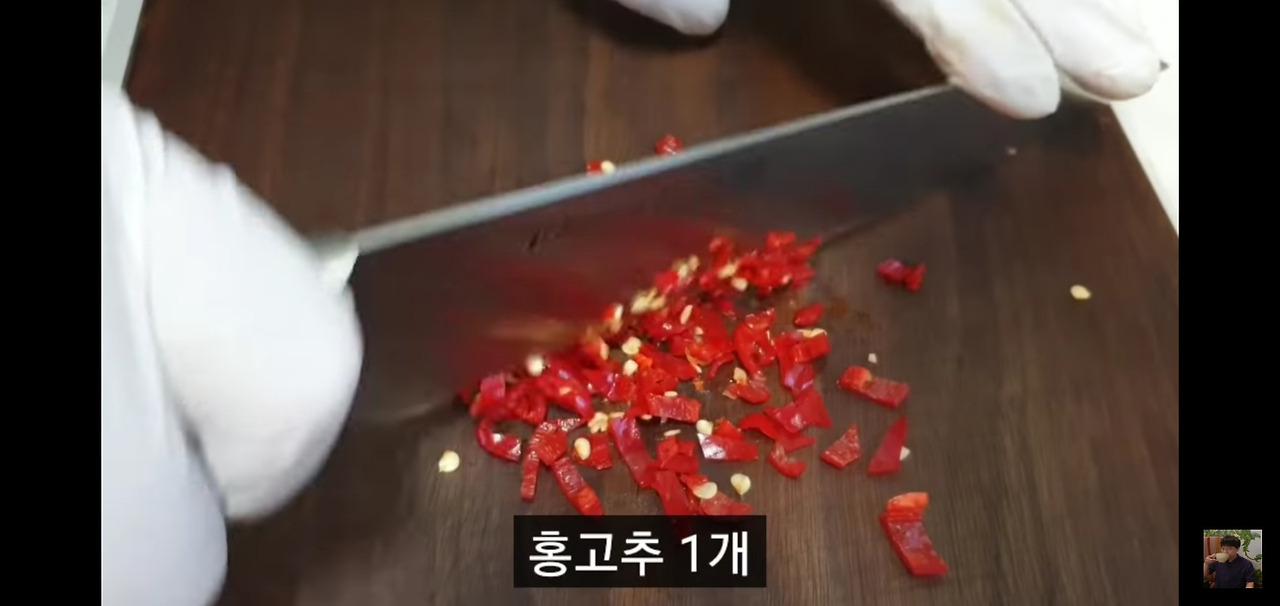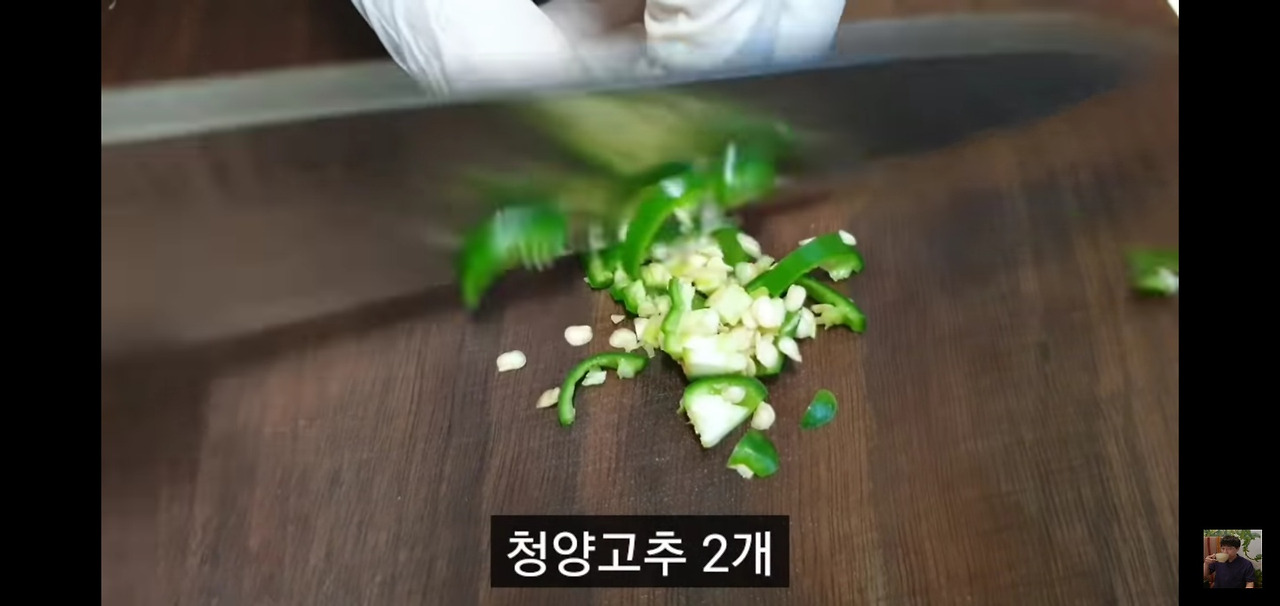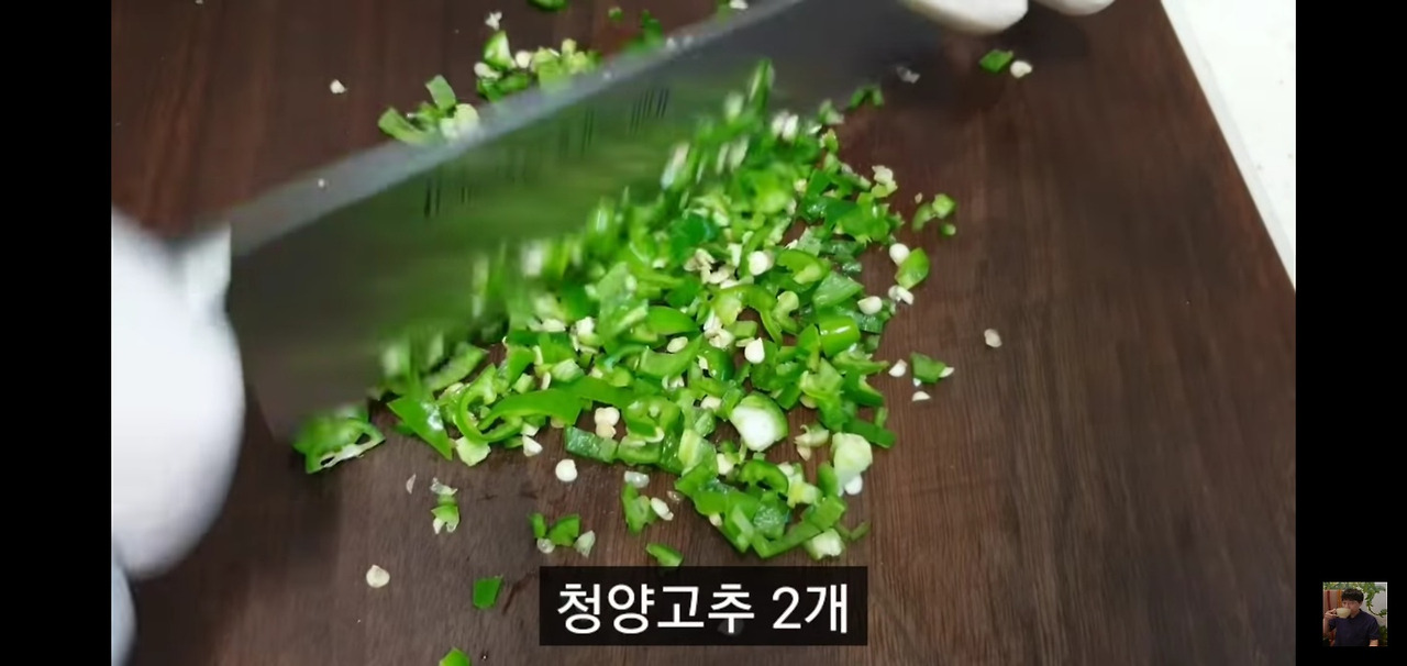 청양고추 2개와 홍고추 1개도 같은 방식으로 잘게 다져주세요.