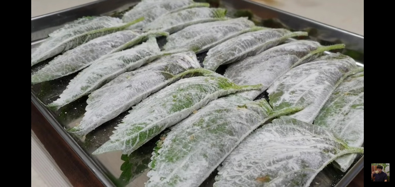 이렇게 깻잎에 튀김옷을 잘 묻혔다면, 이제 다음 단계로 넘어가 볼까요?